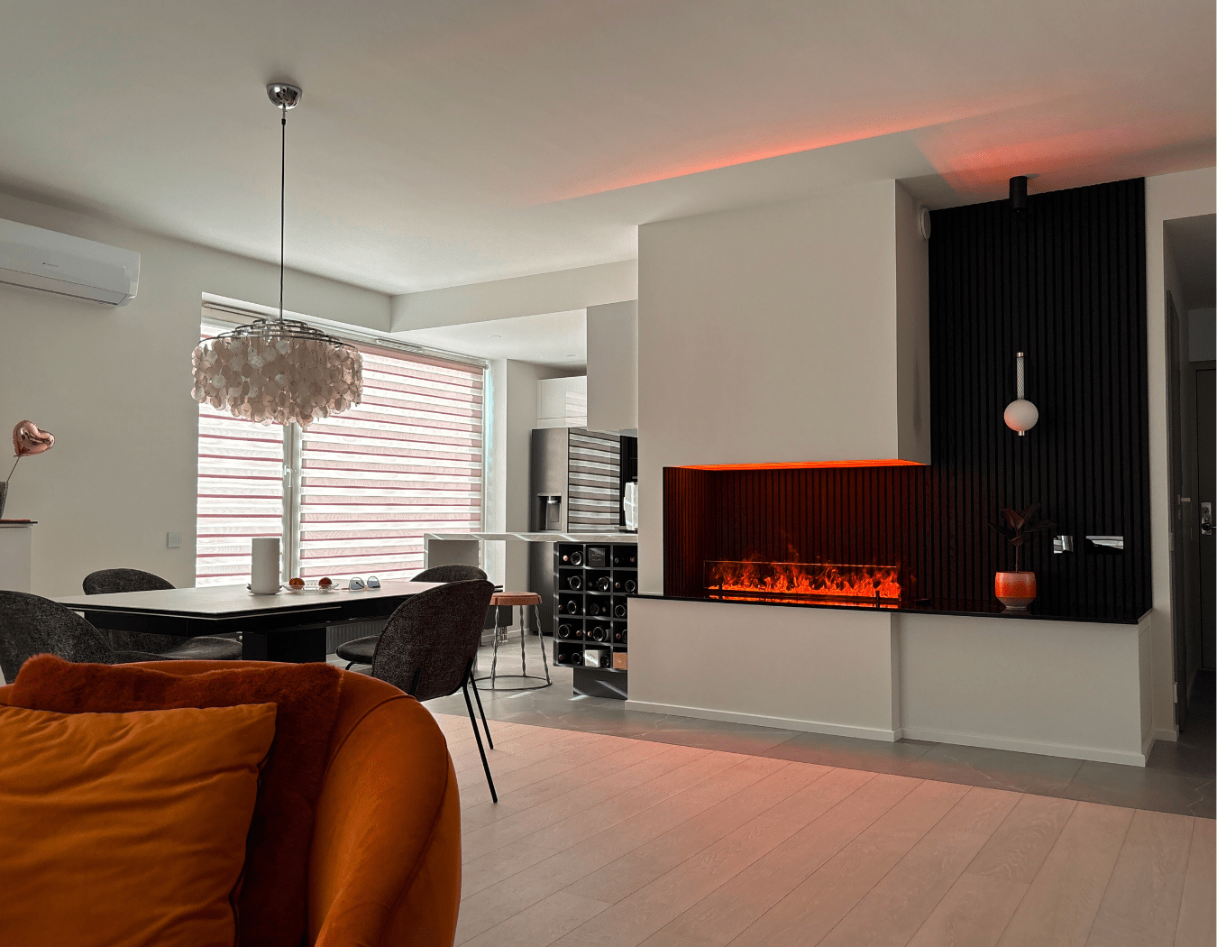 Aurukamina paigaldamiseks ei ole vaja korstent, ventilatsiooni ega ühtki muud piirangut. Vali vaid välja endale sobivas mõõdus kompaktne roostevabast terasest kaminasüdamik ja lisa sellele meelepärane korpus. Kas ise või meie abiga saad kamina sättida täpselt sinna ruumi, kus sulle kõige rohkem meeldib. Seejärel täida sisseehitatud veepaak, ja vaata, kuidas veest tõuseb leek.